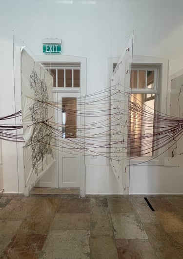 The archive enters the installations as a conceptual and structural presence. It informs how elements are assembled, layered, suspended, and withheld, shaping an understanding of memory as dynamic and continually reconfigured. The works function as open spatial systems, attentive to accumulation, absence, and the traces left by enforced transformation.