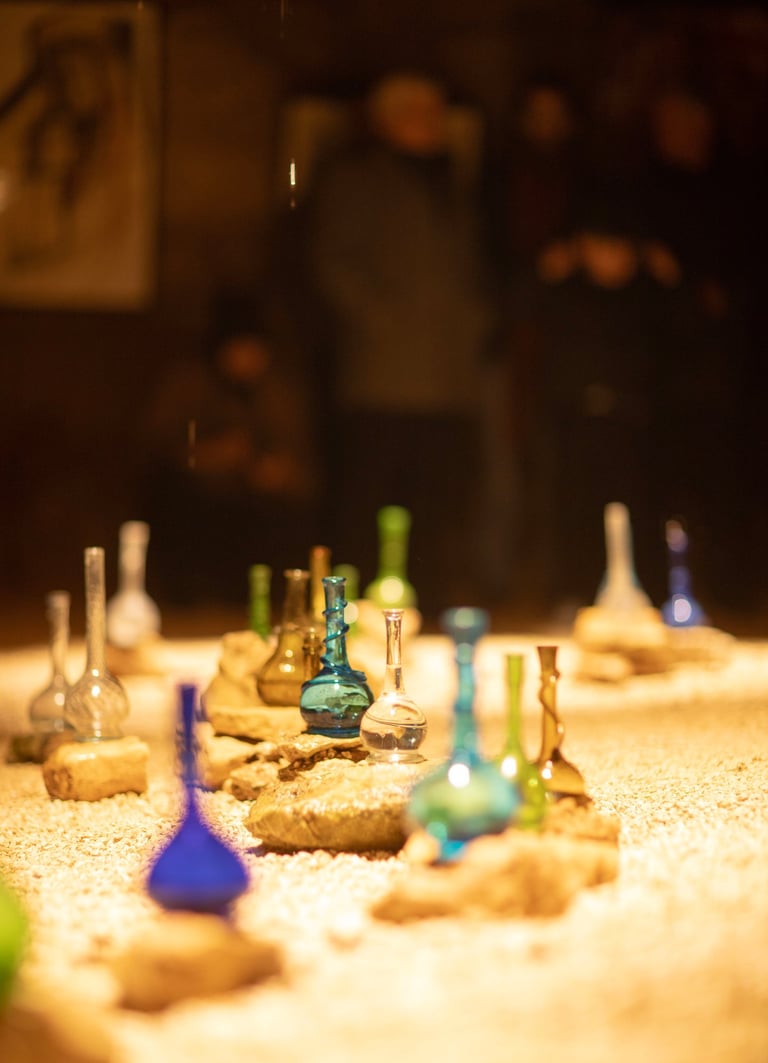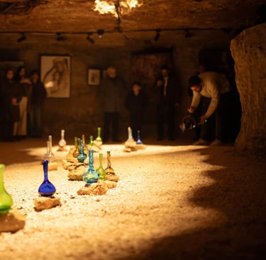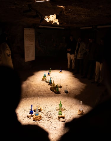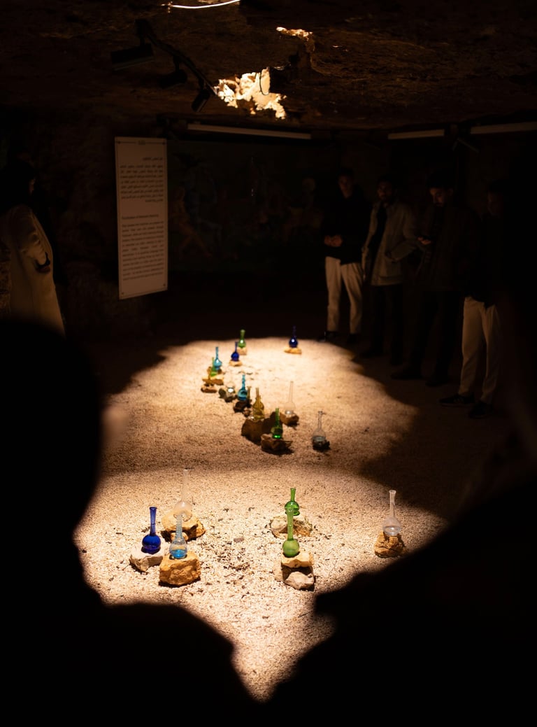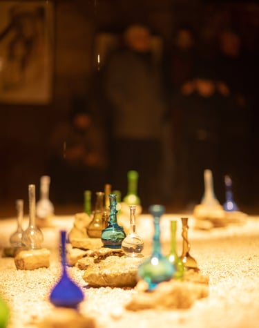 في الأسطورةِ القديمةِ، كانت الدموعُ تُحفَظُ في قواريرَ صغيرة—شاهداتٍ على الحُزنِ ترافقُ الموتى. وتصيرُ رفيقةَ الجسد: مرآتَهُ واستعارتَهُ. قبل الإبادةِ بزمنٍ بعيدٍ كانت دموعي قد نضبَتْ؛ استقرَّ الحزنُ في الجسدِ من غيرِ لسان. الإبادةُ كبَّلَتِ الكلامَ أكثر، محوِّلةً الأسى إلى غضبٍ مكتوم. أعودُ إذن إلى اللغةِ الأولى: دموعٌ تتكاثفُ وتتَّسِعُ, تطلبَ طوفانًا يغسلُ العالمَ ويُعيدُ ترتيبَ الأرضِ والإنسانِ واللغة. يأتي الشهداءُ بوجوهٍ كثيرة؛ كلُّ وجهٍ يستدعي حُزنَهُ الخاص. حين تَعجَزُ المرثيةُ، يُعيدُ العملُ الكلامَ إلى الملحِ والنور. القارورةُ، صورةُ الجسد، كانت ذات يومٍ تحملُ الأسى؛ واليوم تفيض. مرثيةٌ أولى بلا كلام.